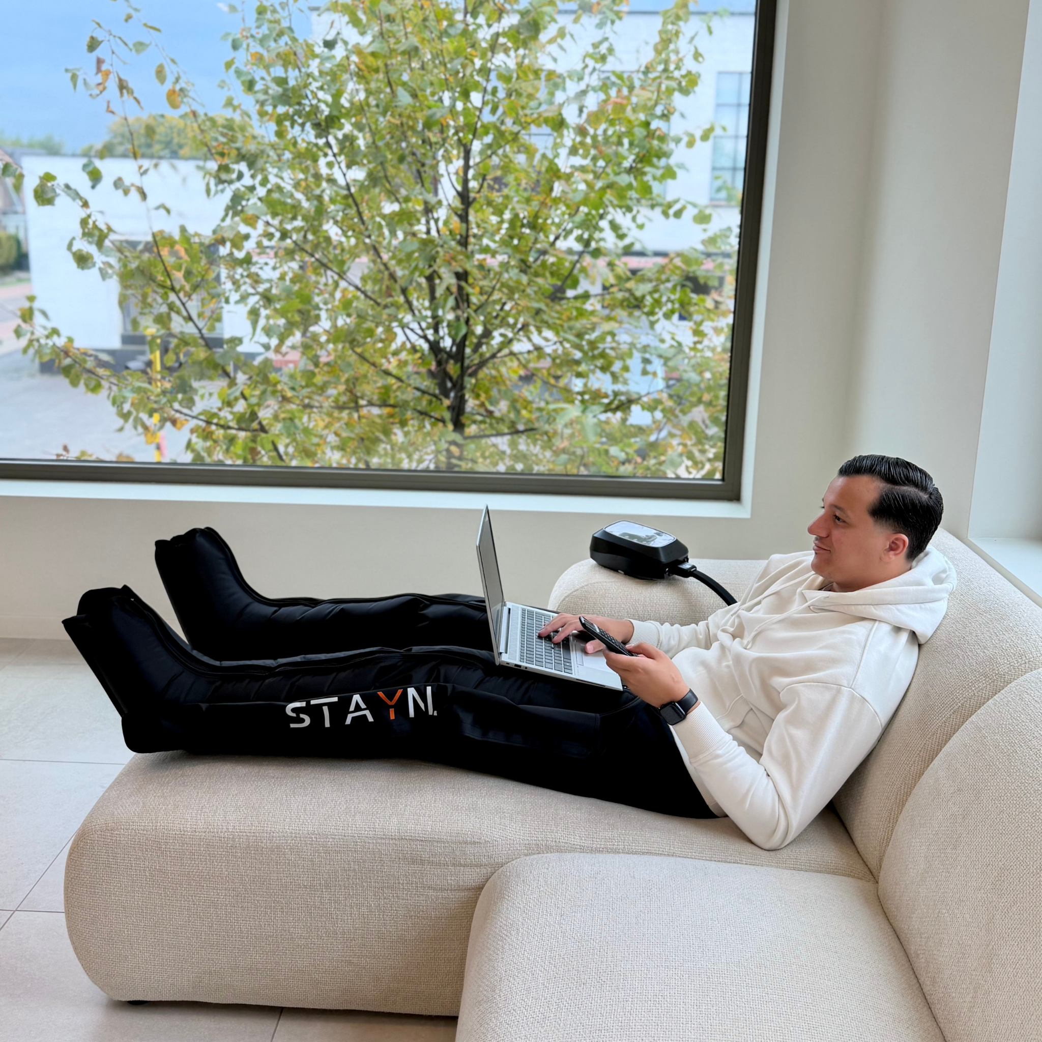 Nous sommes nés d’un constat simple : la performance n’attend pas. Dans les grandes villes, les sportifs ambitieux jonglent entre entraînements exigeants, carrière intense et vie privée rythmée. Ils rêvent d’aller plus loin, plus vite, mais le corps, lui, impose ses limites :courbatures, fatigue musculaire, jambes lourdes, blessures récurrentes. Et pourtant, une vérité s'impose : on ne progresse pas seulement à l’entraînement, mais surtout dans la récupération. C’est ce constat qui a donné naissance à STAYN